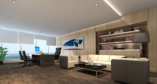 這是它的經理辦公室裝修,高級線條進口地毯是它最大的裝修特色,這能體現高檔辦公室豪華裝修的品質,展現它的豪華高貴。雖然經理辦公室裝修采用了平面石膏板天花,但這不影響它的裝修效果。頂級的軟裝家具燈飾提高了它的附屬價值,辦公室豪華裝修就是這樣來的。